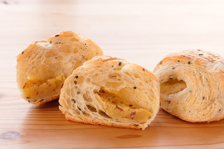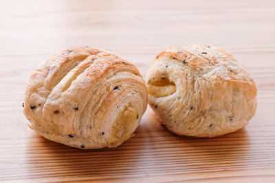自然解凍後、あらかじめ余熱しておいたオーブンやトースターで温めてお召し上がりください。(※気温が上がってくる夏場は一晩冷蔵庫で解凍してください) パン全体に霧吹きなどで軽く水をかけてからトースターで3分~4分ほど加熱するとさっくり、もっちり出来たてのようになり美味しく召し上がれます。
