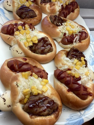 小麦粉、卵、牛乳、餡子、アーモンド、くるみ、えび、チョコレート、ハム、ベーコン、バター、マーガリン、イースト、イーストフード 等使用しております。 ※アレルギーがご心配な方はご遠慮下さい。 ※原材料一覧表をご確認ください。
