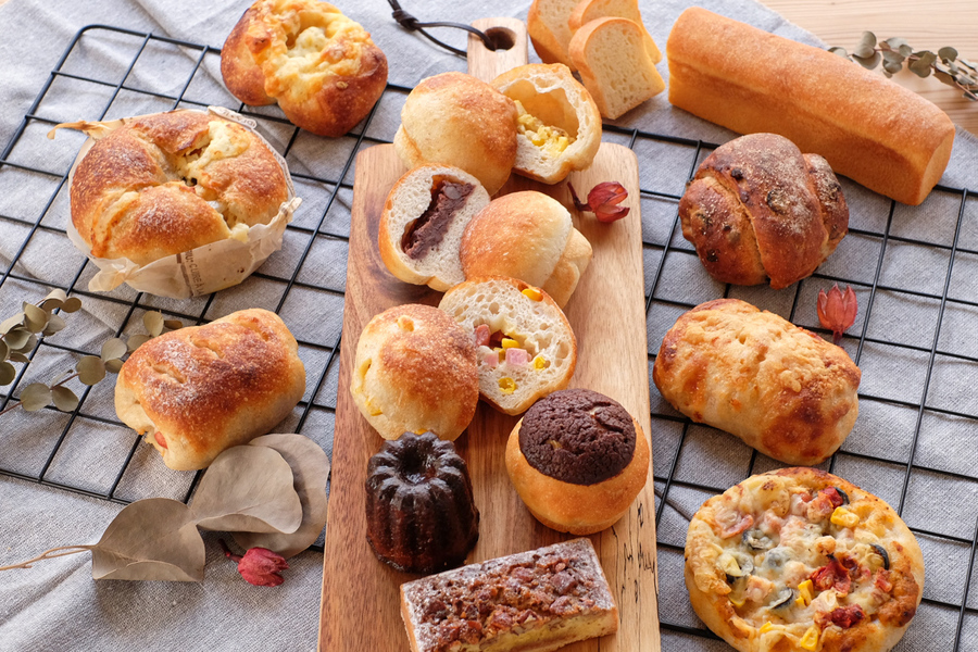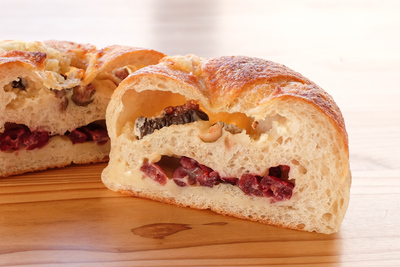 小麦粉、牛乳、砂糖、卵、全粒粉、イチジク、カマンベール、クランベリー、ブルーベリー、くるみ、ジャガイモ、マスタード、スイートコーン、マヨネーズ、チーズ、小豆、水あめ、脱脂粉乳、チョコレート、生クリーム、コーンスターチ、サワークリーム、はちみつ、塩、黒コショウなど (一部に小麦・卵・乳成分・大豆・クルミ・アーモンド・豚肉を含む) ※アレルギーがご心配な方はご遠慮下さい。 ※各パンに原材料表示シールを貼付します。