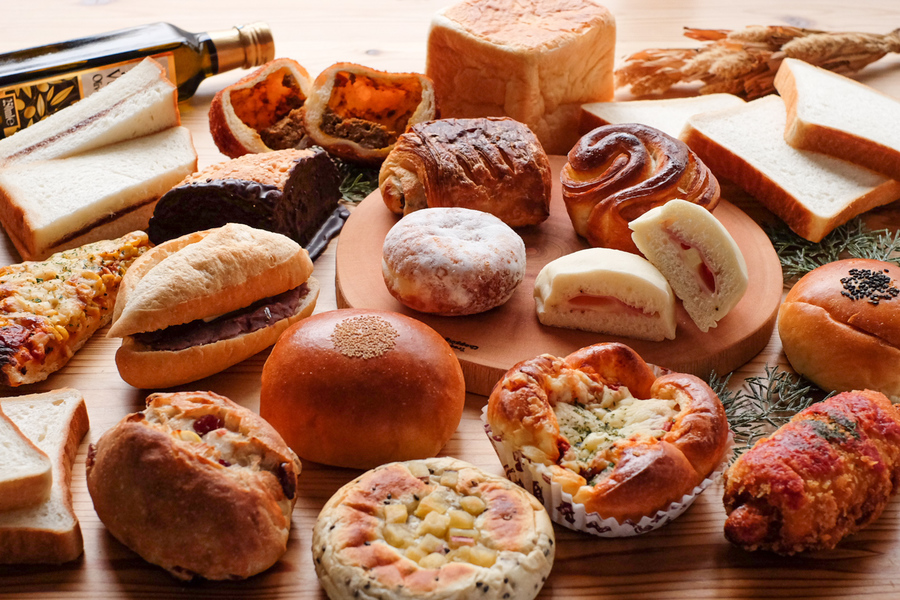 小麦粉、マーガリン、はちみつ・ミックスジャム、加糖練乳、ソーセージ、パセリ、チョコレート、さつまいも、ごま、あんこ、食用精製加工油脂、発酵バター、植物性油脂、砂糖、酵母、塩など (一部に小麦・卵・乳成分・大豆・ごま・豚肉・オレンジ・りんごを含む) ※アレルギーがご心配な方はご遠慮下さい。 ※各パンに原材料表示シールを貼付します。