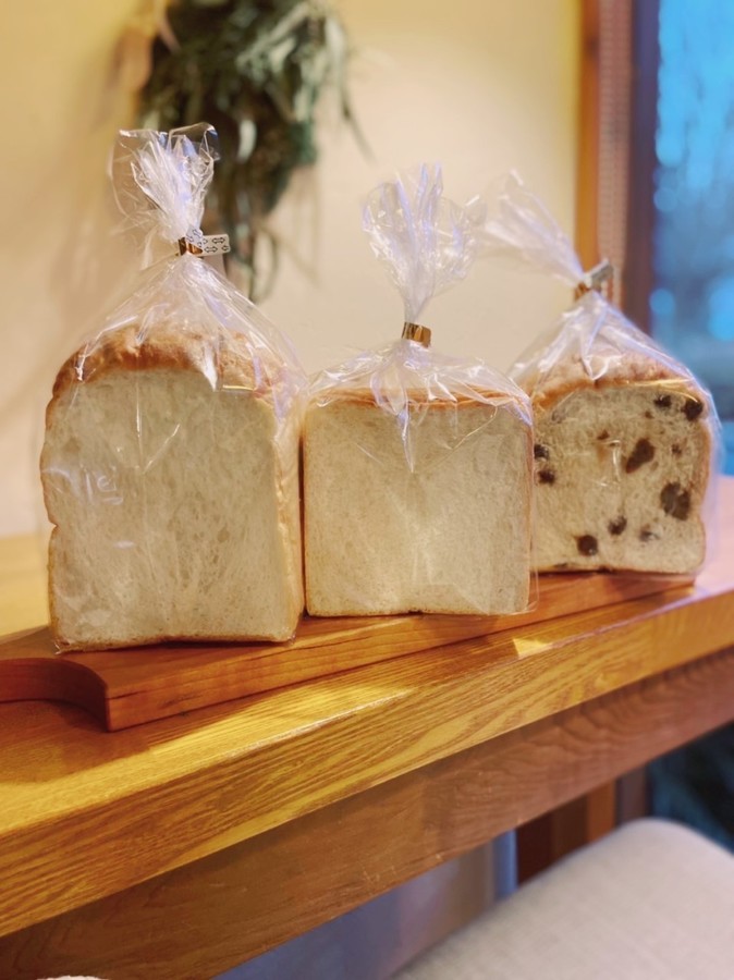 ●イギリスパン:1斤 ●食パン:1斤 ●レーズンパン:1斤 ●お楽しみパン:5個・・・当日焼いたパンです。 何が入ってるかはお楽しみ☆