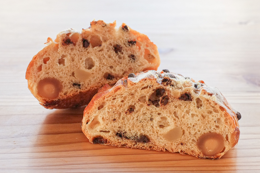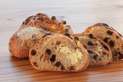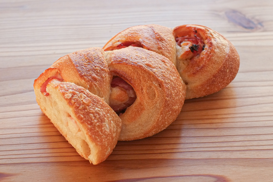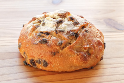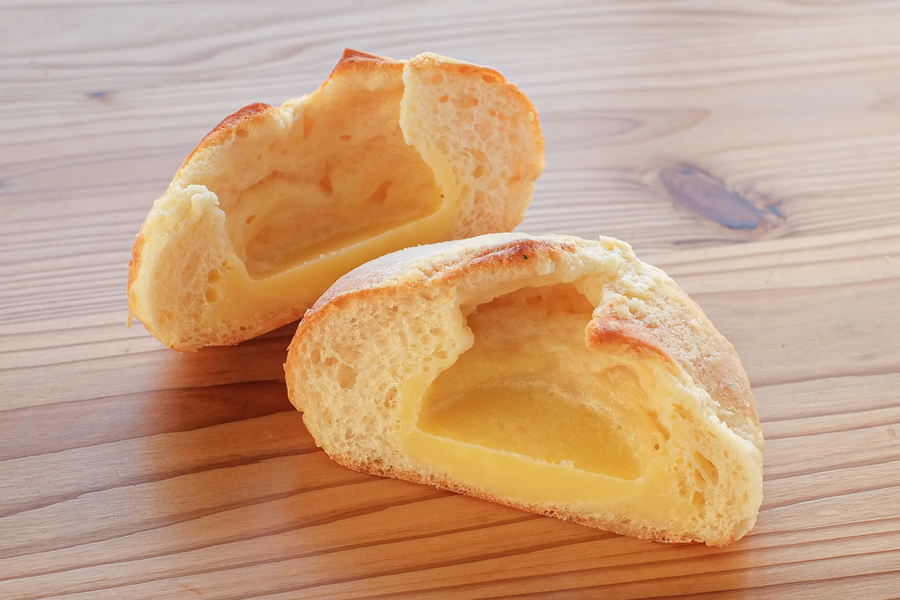 1時間程度常温で解凍後、600Wの電子レンジで20秒チンしてから、あらかじめ余熱しておいた700Wのオーブントースターで1~2分温めてお召し上がりください。 (※気温が上がってくる夏場は一晩冷蔵庫で解凍してください) パン全体に霧吹きなどで軽く水をかけてからトースターで3分~4分ほど加熱するとさっくり、もっちり出来たてのようになり美味しく召し上がれます。