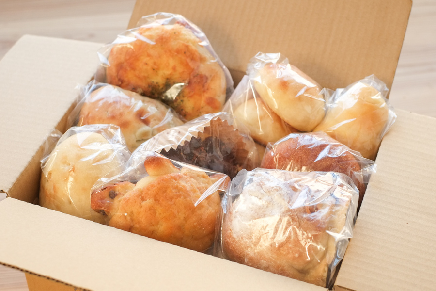60サイズの箱に13個前後のパンをお詰めしてお送りいたします。 ※同じ商品が2つ以上入る事もございます。