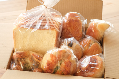 60サイズの箱に12~14個前後のパンを箱に詰めてお送りします。