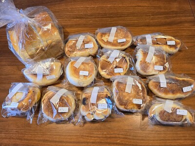 2回目の購入です。菓子パンが多めでした。今回はお勧めの食パンからいただきました。リベイクすると外はカリッと、中は密度が濃くて食べ応えがありました。お惣菜パンも、たっぷりのフィリングで一つでも満足できるものでした。一方で、デニッシュはサクッと軽い食感で、違いを楽しむことができました。美味しいパンをありがとうございます。