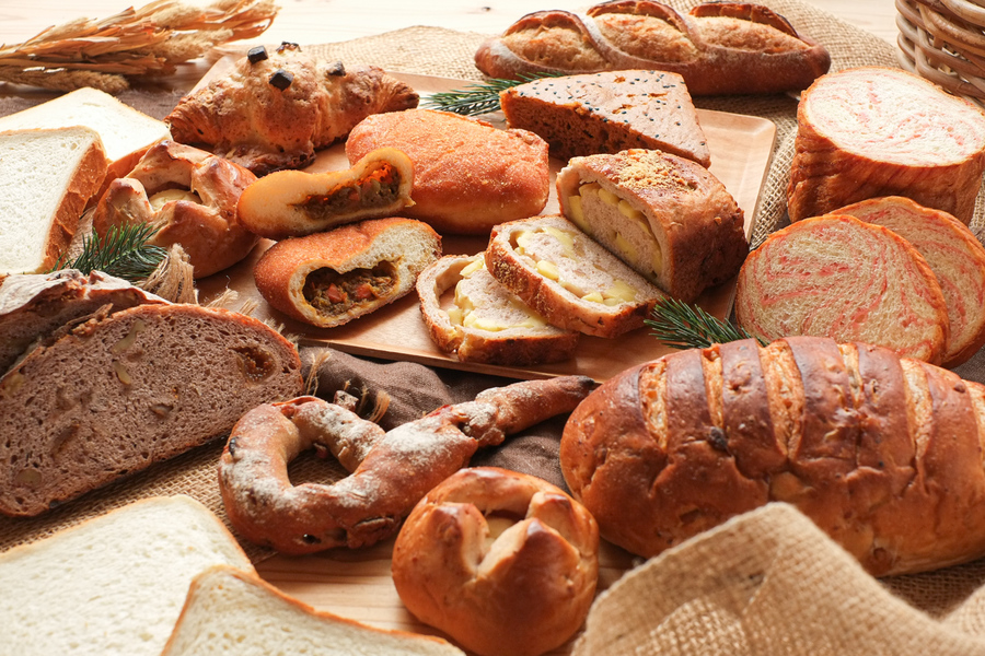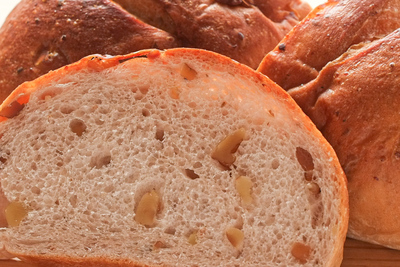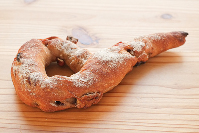 小麦粉・卵・砂糖・塩・パン酵母・はちみつ・ショートニング・クルミ・ゴマ・チーズ・クランベリー ほか ※アレルギーがご心配な方はご遠慮下さい。 ※各パンに原材料表示シールを貼付します。