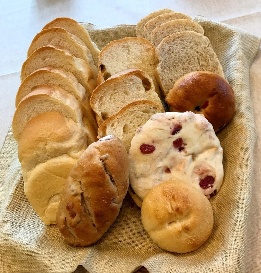 小麦粉、あこ天然酵母、三温糖、塩など ※各パンに原材料表示シールを貼付します。