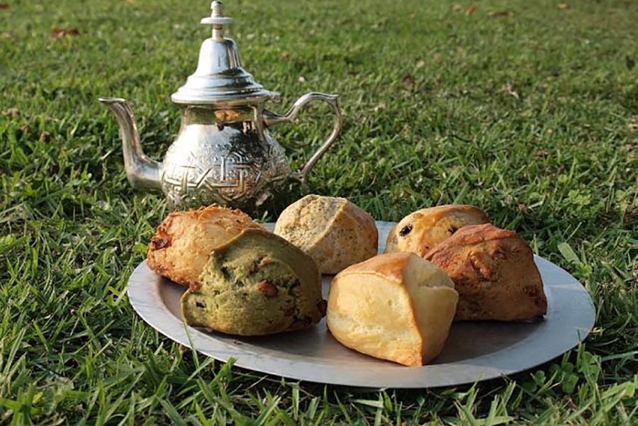 ●定番スコーン4種類 ●季節のスコーン4種類(随時変わります) 合計8種類の中から その日にお出しできる5種類を選んで、各3個づつ、合計15個をお入れします。 スコーン1個のサイズは、直径約6cm程となります。