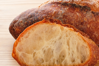自然解凍後、あらかじめ余熱しておいたオーブンやトースターで温めてお召し上がりください。(※気温が上がってくる夏場は一晩冷蔵庫で解凍してください) パン全体に霧吹きなどで軽く水をかけてからトースターで3分~4分ほど加熱するとさっくり、もっちり出来たてのようになり美味しく召し上がれます。 厚みのあるパンは表面がこげやすいのでアルミホイルをかけて加熱してください。