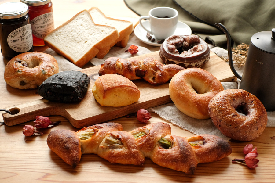 主な原材料:小麦粉、粗糖、バター、有機ショートニング、ルヴァンリキッド、パン酵母、塩、有機ドライブルーベリー、有機黒オリーブ、無添加ベーコン、生クリーム、牛乳、アスパラ、リンゴコンポート、チョコチップ、チャコールパウダー、白神ドライイースト、じゃがいも、ディルなど アレルゲン:小麦・卵・乳成分・大豆・豚肉・りんご など ※アレルギーがご心配な方はご遠慮下さい。 ※各パンに原材料表示シールを貼付します。
