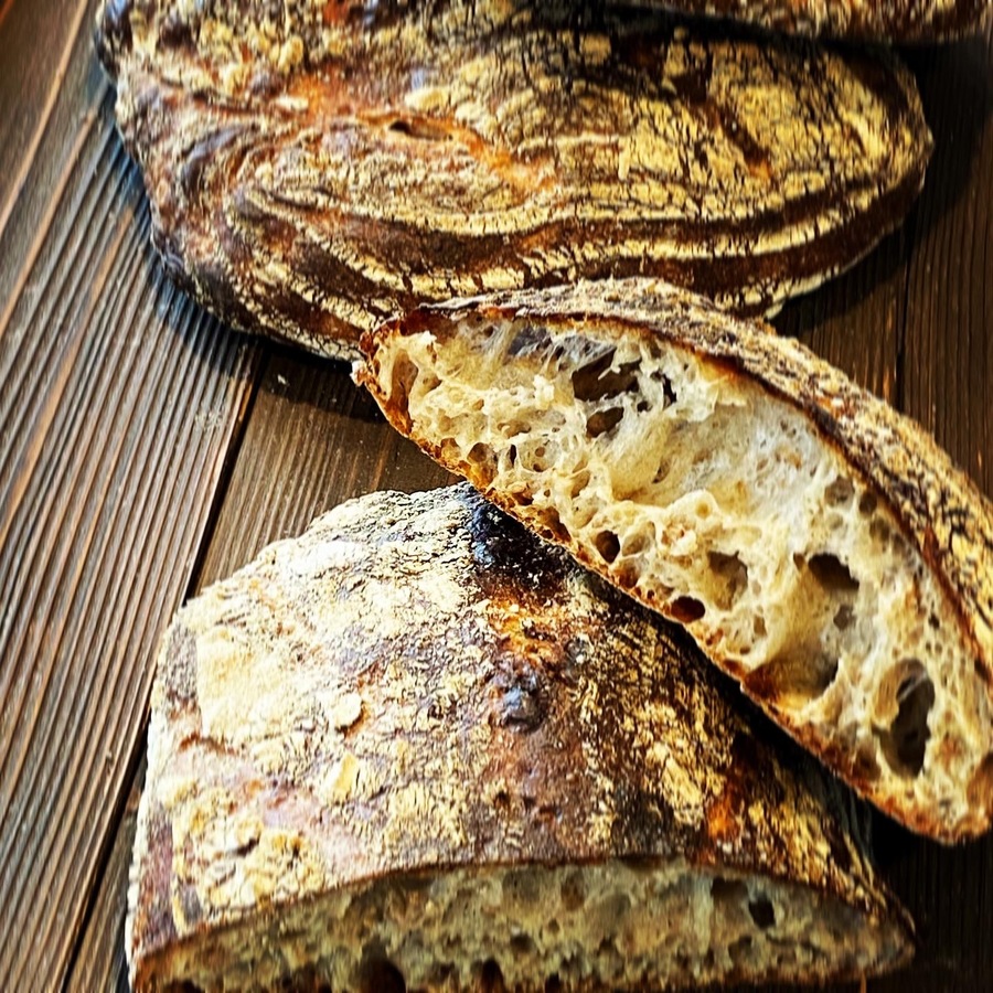 北海道産小麦、石臼挽き小麦を使用した自家製酵母、高加水、長時間熟成で仕上げたハード系のパンを主軸に販売しています。 他にパネトーネ種を...
