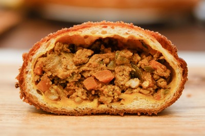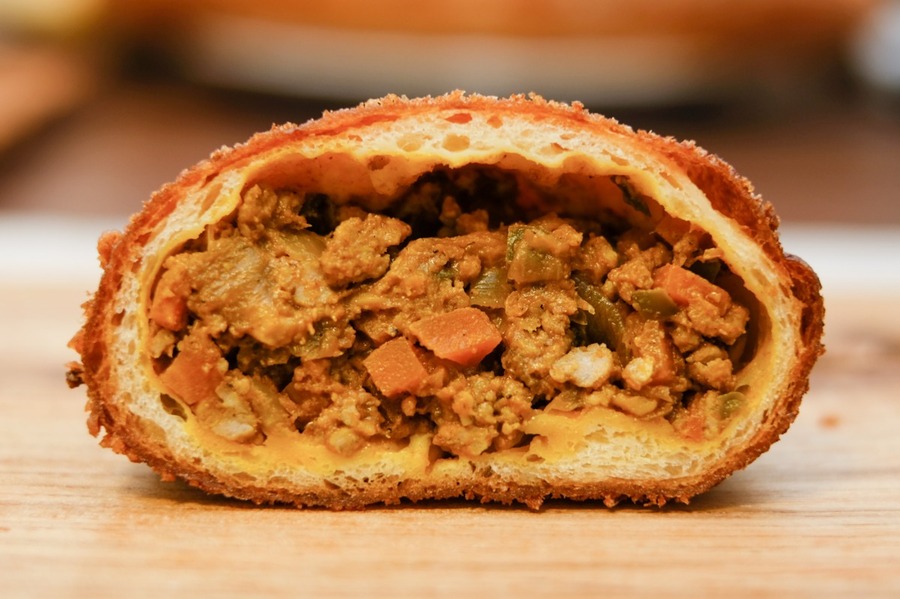 主な原材料:小麦粉・塩・砂糖・バター・パン酵母 他 ※各パンに原材料表示シールを貼付します。 焼きカレーパン(商品一例):小麦、乳、卵、大豆