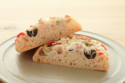 自然解凍後、あらかじめ余熱しておいたオーブンやトースターで温めてお召し上がりください。(※気温が上がってくる夏場は一晩冷蔵庫で解凍してください) パン全体に霧吹きなどで軽く水をかけてからトースターで3分~4分ほど加熱するとさっくり、もっちり出来たてのようになり美味しく召し上がれます。