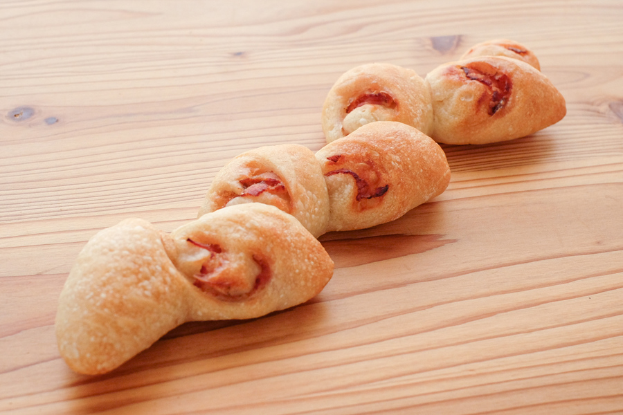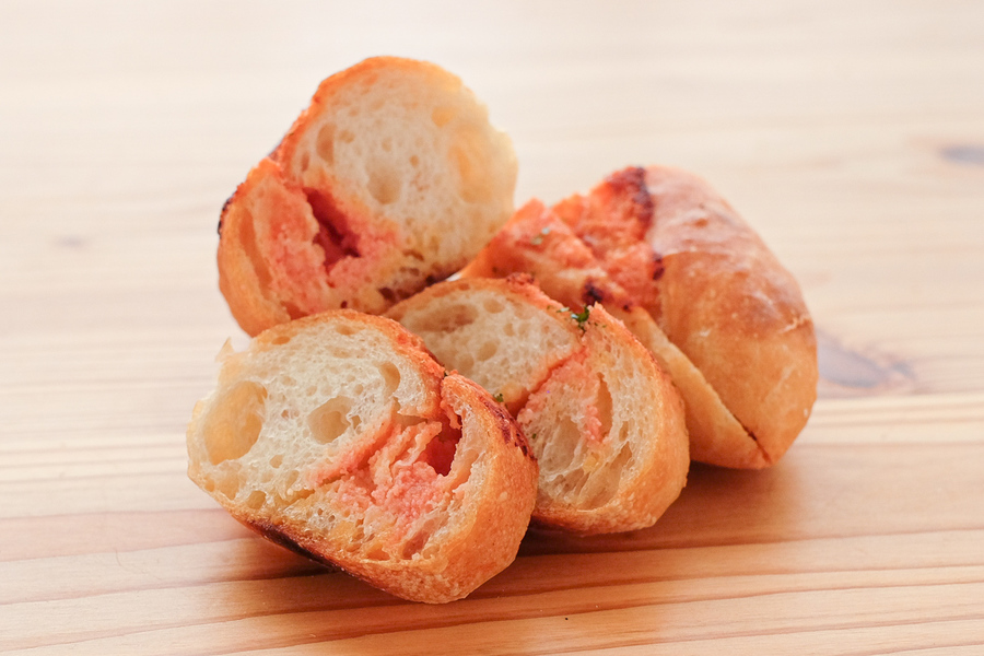 自然解凍後、あらかじめ余熱しておいたオーブンやトースターで温めてお召し上がりください。(※気温が上がってくる夏場は一晩冷蔵庫で解凍してください) パン全体に霧吹きなどで軽く水をかけてからトースターで3分~4分ほど加熱するとさっくり、もっちり出来たてのようになり美味しく召し上がれます。