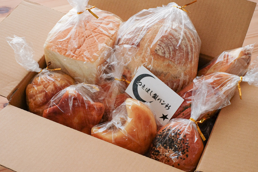 80サイズ(外寸70cm)の箱に13~15個ほどのパンを詰めてお送りします。 ※パンの大きさによって個数は変動します。