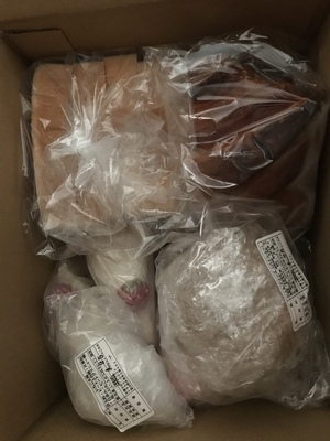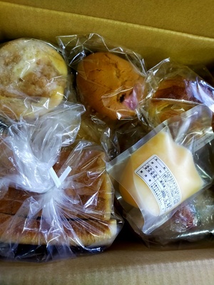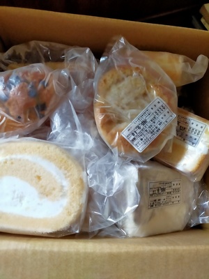 箱いっぱいの沢山のお菓子やケーキ、食パンまでありがとうございます。