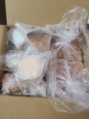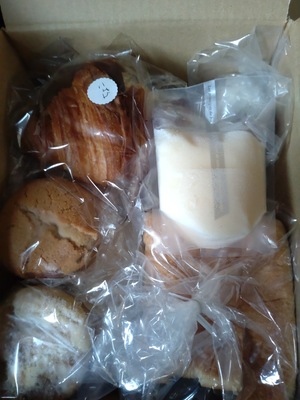 大好きな湯だね食パンとたくさんのケーキ、焼き菓子が入っていました。冷凍のケーキは初めてでしたが、どれも美味しくて感激しました。食パンもすごく美味しいので大満足のセットです。私は特にシュークリームとりんごのケーキが好きでした。バタークリーム以外は甘さ控えめでそれも好みでした。リピート購入したので届くのが楽しみです。