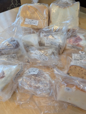 美味しいケーキ、パンをありがとうございました。大好きな米粉ロール、食パンが入っており 食べるのが凄く楽しみです。