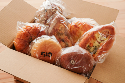 60サイズの箱に12個ほどのパンをお詰めしてお送りします ※パンの大きさにより前後します