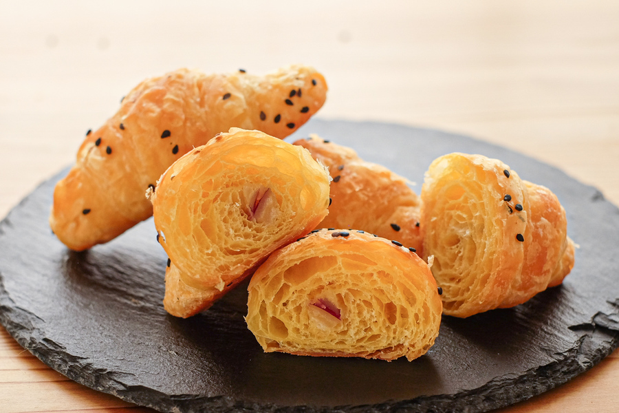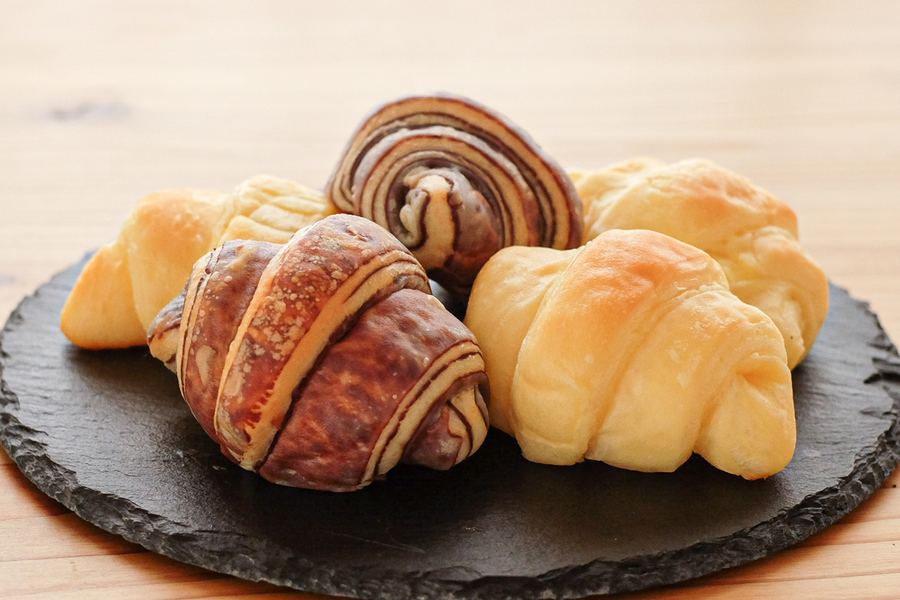 主な原材料:小麦粉、ショートニング、バター、卵、マーガリン、砂糖、パン酵母、塩、モルトエキス、明太子、チョコレートシートフラワーペースト、粒あん、マヨネーズ、じゃがいも、甘納豆など ミニクロワッサン(商品一例):チョコレートシートフラワーペースト(砂糖混合異性化液糖、ショートニング、ココアパウダー、その他)、カスタード味フラワーペースト(砂糖混合異性化液糖、ショートニング、牛乳、その他)、小麦粉、卵、砂糖、ファットスプレッド、脱脂粉乳、パン酵母、塩/乳化剤、加工澱粉、香料、増粘多糖類、着色料(カロテン)(一部に小麦・卵・乳成分を含む) ※アレルギーがご心配な方はご遠慮下さい。 ※各パンに原材料表示シールを貼付します。
