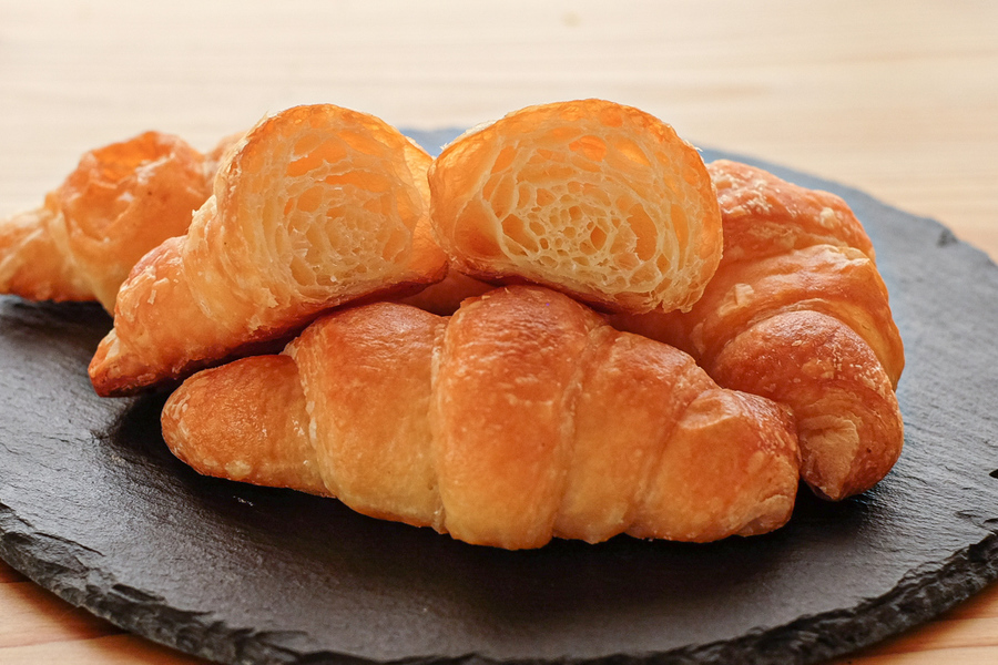 自然解凍後、あらかじめ余熱しておいたオーブンやトースターで温めてお召し上がりください。(※気温が上がってくる夏場は一晩冷蔵庫で解凍してください) パン全体に霧吹きなどで軽く水をかけてからトースターで3分~4分ほど加熱するとさっくり、もっちり出来たてのようになり美味しく召し上がれます。