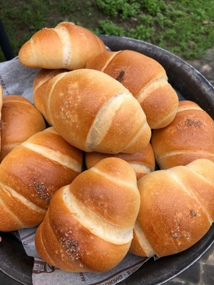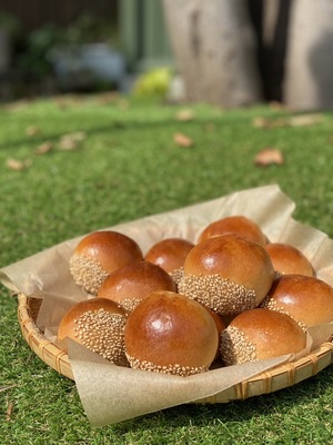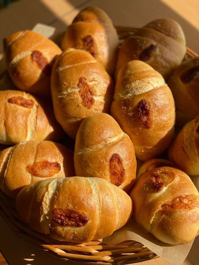主な原材料:小麦粉(カナダ産、アメリカ産)、バター、マーガリン、オリーブオイル、ショートニング、砂糖、はちみつ、パン酵母、塩 アレルゲン:小麦・卵・乳成分・大豆・豚肉・くるみ・ごま など 塩バターロール(商品例):小麦粉(カナダ・アメリカ産)、バター、バター入りマーガリン、グラニュー糖、練乳、生クリーム、パン酵母、はちみつ、塩/酸化防止剤(トコフェノール)、乳化剤、香料、着色料(カロテン) ※原材料一覧表をおつけします ※すべてのパンを一つの工房で作っています。完全にアレルギーに対応出来てはおりません。卵、乳製品など原材料として使っていない場合でも同一工房で生産していることはご了承くださいませ。
