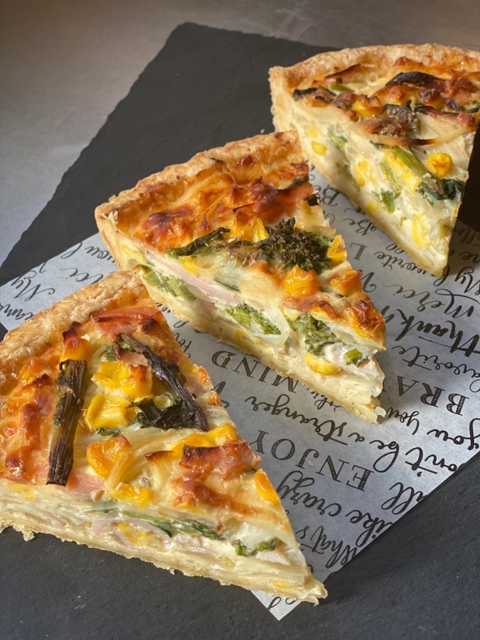 【キッシュの美味しい食べ方】 中はふわとろ、外はサクサクの温め方 1.電子レンジで20~30秒温める 2.トースターで2~3分焼く 【極太ウインナー等厚みのあるパン】 20~30秒あたためてからトーストすると中まであつあつでおすすめです。 【メロンパン等クッキー生地のパン】 温めたあとに少しだけ冷まして食べると、サクッと美味しく食べれます。 【その他パンの食べ方】 自然解凍後、あらかじめ余熱しておいたオーブンやトースターで温めてお召し上がりください。(※気温が上がってくる夏場は一晩冷蔵庫で解凍してください) パン全体に霧吹きなどで軽く水をかけてからトースターで3分~4分ほど加熱するとさっくり、もっちり出来たてのようになり美味しく召し上がれます。 焦げやすいパンはアルミホイルで包んで加熱していただくと焦げにくいです。