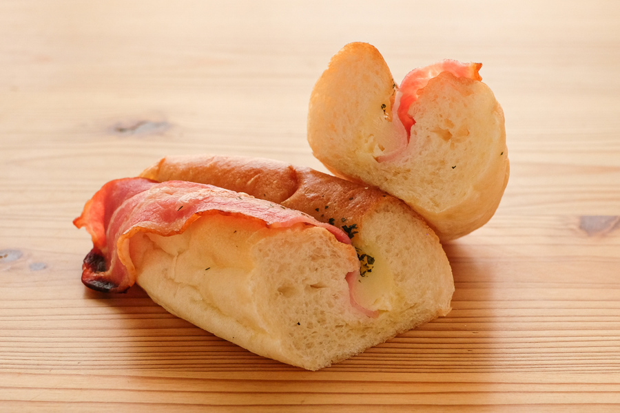 主な原材料:小麦粉(小麦(北海道産))、グラニュー糖、トレハロース、モルト、塩、生イースト、脱脂粉乳、バター、生クリーム、卵 アレルゲン:小麦・卵・乳成分・くるみ・豚肉・など ベーコンモッツアレラ(商品例):小麦粉(小麦(北海道産))、ベーコン、ナチュラルチーズ、モルト、塩、イースト、マヨネーズ、パセリ/加工澱粉、トレハロース、リン酸塩(Na)、酸化防止剤(V.C)、発色剤、着色料、香辛料抽出物 ※工房では小麦粉・卵・乳・落花生を含む製品を生産しています。 ※アレルギーがご心配な方はご遠慮下さい。 ※各パンに原材料表示シールを貼付します。