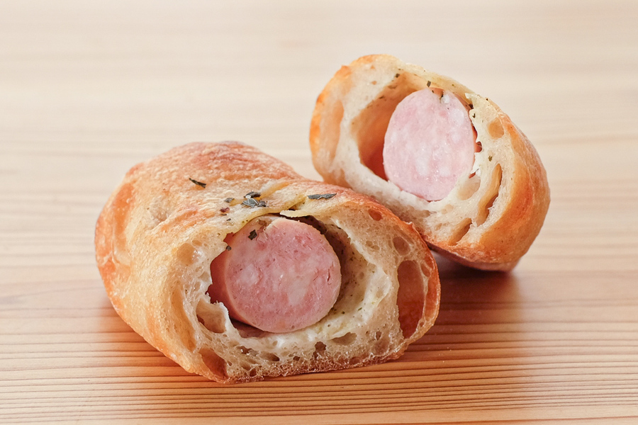 主な原材料:小麦粉、砂糖、塩、パン酵母 ほか アレルゲン(7品目):小麦・卵・乳成分 阿蘇自然豚ソーセージ(商品一例):小麦粉、塩、ドライイースト、バジル、なたね油、パルメザンチーズ、にんにく、バジルフレーク、フランクフルトソーセージ / 加工澱粉、リン酸塩(Na)、pH調整剤、香辛料抽出物、酸化防止剤(ビタミンC)、調味料(アミノ酸)、発色剤(亜硝酸Na)(一部に小麦・豚肉・乳成分を含む) ※アレルギーがご心配な方はご遠慮下さい。 ※各パンに原材料表示シールを貼付します。