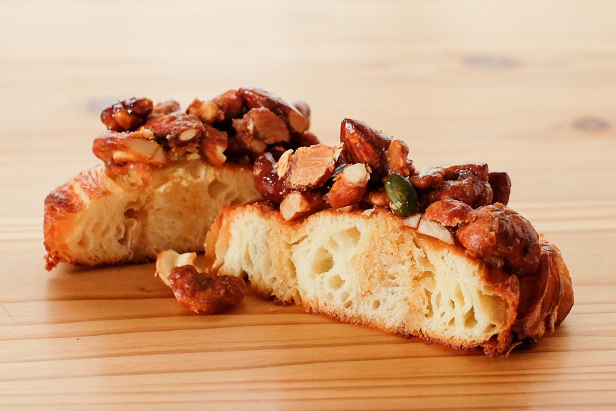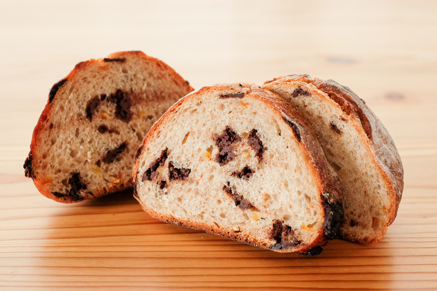 自然解凍後、あらかじめ余熱しておいたオーブンやトースターで温めてお召し上がりください。(※気温が上がってくる夏場は一晩冷蔵庫で解凍してください) パン全体に霧吹きなどで軽く水をかけてからトースターで3分~4分ほど加熱するとさっくり、もっちり出来たてのようになり美味しく召し上がれます。