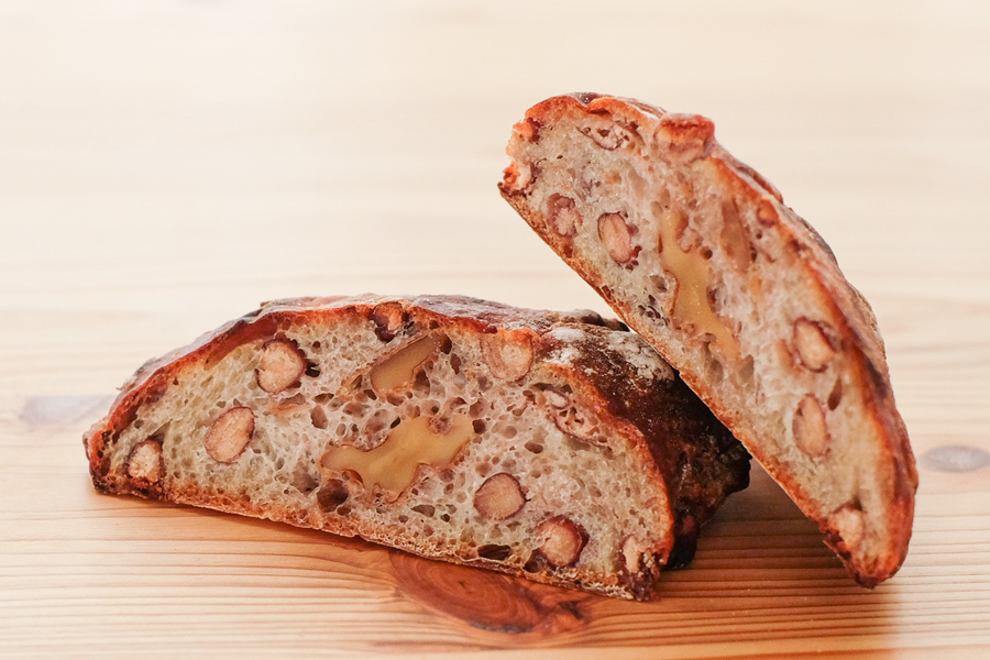 自然解凍後、あらかじめ余熱しておいたオーブンやトースターで温めてお召し上がりください。(※気温が上がってくる夏場は一晩冷蔵庫で解凍してください) パン全体に霧吹きなどで軽く水をかけてからトースターで3分~4分ほど加熱するとさっくり、もっちり出来たてのようになり美味しく召し上がれます。