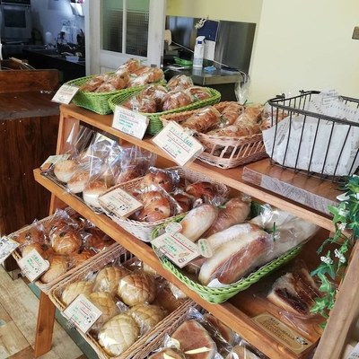 主な原材料:小麦、洗双糖、米油、海塩、麹 米 小麦由来酵母 米、くるみ、豆乳、ごま、アーモンド りんご オレンジ バナナ 他 ※各パンに原材料表示シールを貼付します。 メロンパン(商品一例):長野産小麦粉、洗双糖、豆乳、片栗粉、ホシノ天然酵母、レモン、米油、海塩、ベーキングパウダー