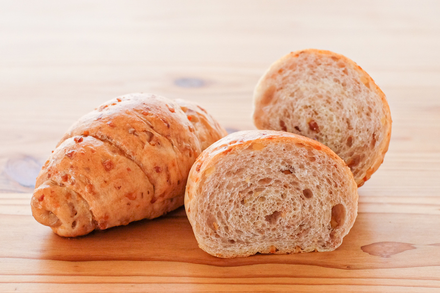 自然解凍後、あらかじめ余熱しておいたオーブンやトースターで温めてお召し上がりください。(※気温が上がってくる夏場は一晩冷蔵庫で解凍してください) パン全体に霧吹きなどで軽く水をかけてからトースターで3分~4分ほど加熱するとさっくり、もっちり出来たてのようになり美味しく召し上がれます。 厚みのあるパンは表面がこげやすいのでアルミホイルをかけて加熱してください。
