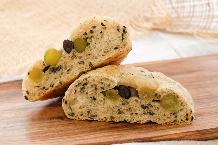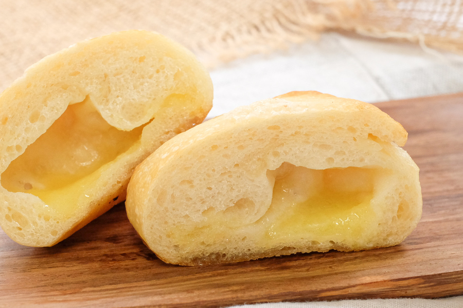 自然解凍後、あらかじめ余熱しておいたオーブンやトースターで温めてお召し上がりください。(※気温が上がってくる夏場は一晩冷蔵庫で解凍してください) パン全体に霧吹きなどで軽く水をかけてからトースターで3分~4分ほど加熱するとさっくり、もっちり出来たてのようになり美味しく召し上がれます。