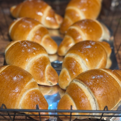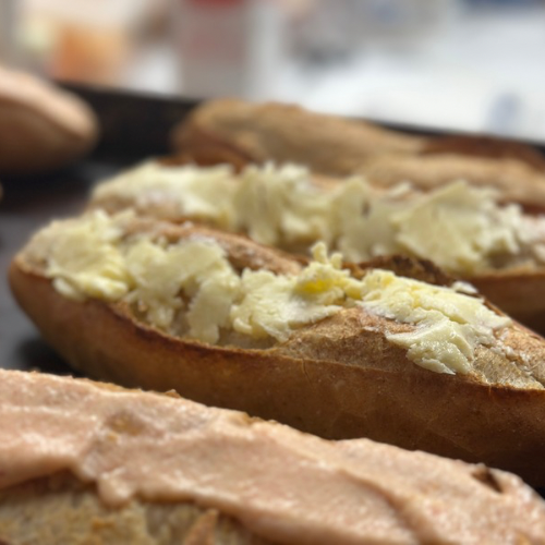 自然解凍後、あらかじめ余熱しておいたオーブンやトースターで温めてお召し上がりください。(※気温が上がってくる夏場は一晩冷蔵庫で解凍してください) パン全体に霧吹きなどで軽く水をかけてからトースターで3分~4分ほど加熱するとさっくり、もっちり出来たてのようになり美味しく召し上がれます。 厚みのあるパンや明太フランスは表面がこげやすいのでアルミホイルをかけて加熱してください。