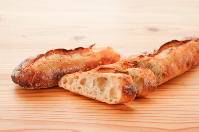 自然解凍後、あらかじめ余熱しておいたオーブンやトースターで温めてお召し上がりください。(※気温が上がってくる夏場は一晩冷蔵庫で解凍してください) パン全体に霧吹きなどで軽く水をかけてからトースターで3分~4分ほど加熱するとさっくり、もっちり出来たてのようになり美味しく召し上がれます。