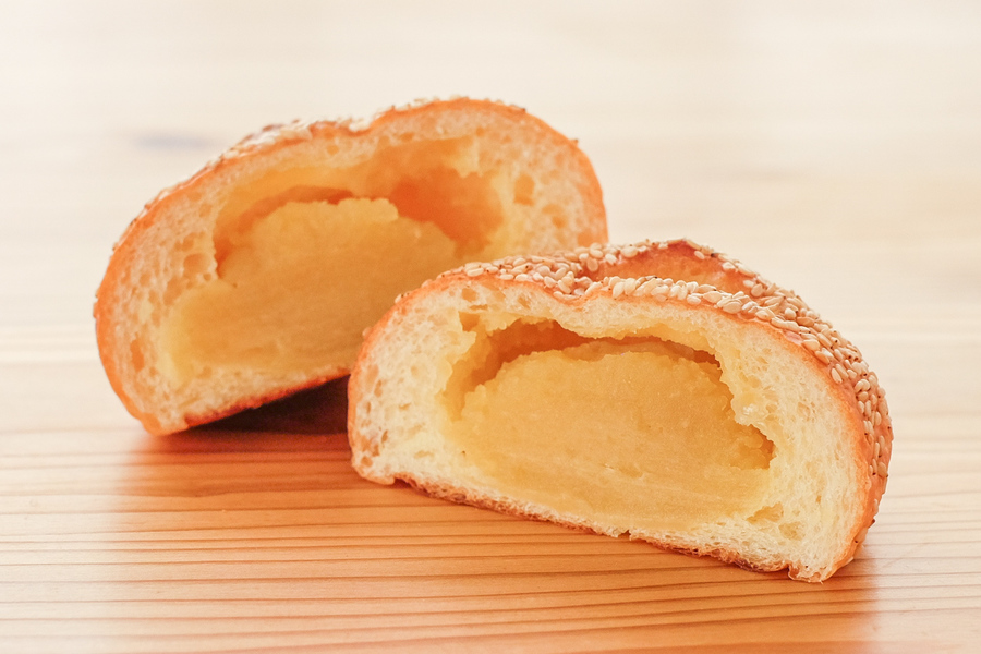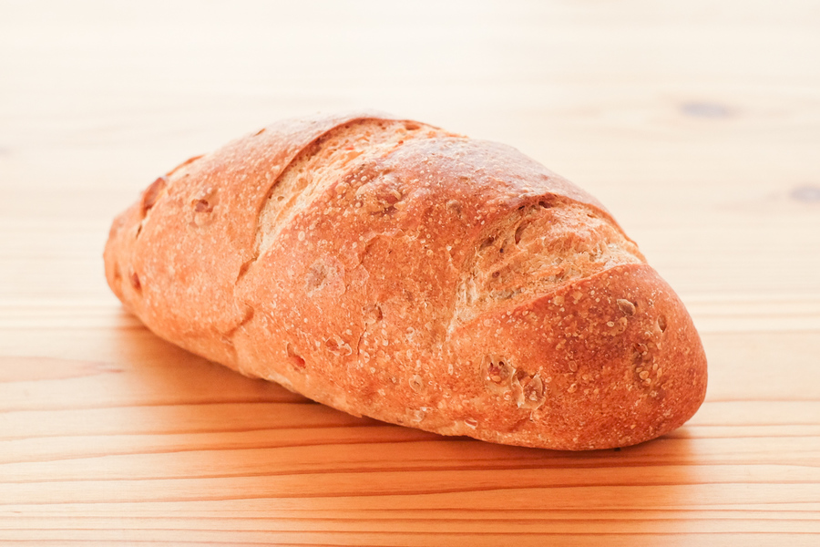自然解凍後、あらかじめ余熱しておいたオーブンやトースターで温めてお召し上がりください。 パン全体に霧吹きなどで軽く水をかけてからトースターで2分~3分ほど加熱するとさっくり、もっちり出来たてのようになり美味しく召し上がれます。 厚みのあるパンは表面がこげやすいのでアルミホイルをかけて加熱してください。