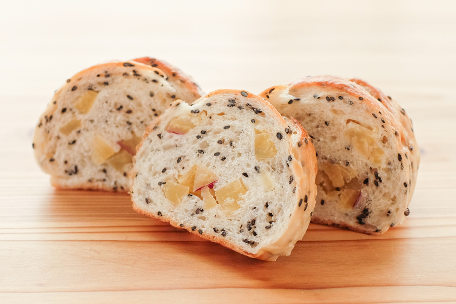 自然解凍後、あらかじめ余熱しておいたオーブンやトースターで温めてお召し上がりください。(※気温が上がってくる夏場は一晩冷蔵庫で解凍してください) パン全体に霧吹きなどで軽く水をかけてからトースターで3分~4分ほど加熱するとさっくり、もっちり出来たてのようになり美味しく召し上がれます。 厚みのあるパンは表面がこげやすいのでアルミホイルをかけて加熱してください。
