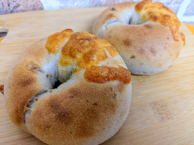 自然解凍後、電子レンジで温めてお召し上がり下さい。トースターで焼くと表面はパリッと中はもっちりとした食感になります。