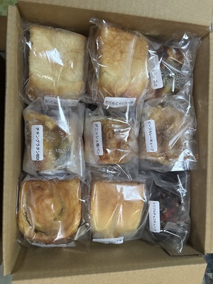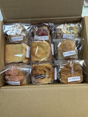 いつも届けられるまで楽しみにまっています。 今回は前回と違う種類のパンが入っていて食べるのを楽しみにしています。 惣菜パンも菓子パンも どれも個性があってこっちの地域では食べられない味です。 次回は早めに注文しようと思いますが、制限解除の通知が来てもあっという間に制限になります。気をつけてメールをチェックしようと思います。