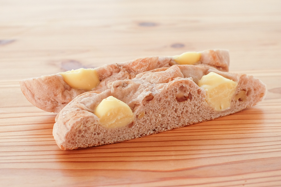 自然解凍後、あらかじめ余熱しておいたオーブンやトースターで温めてお召し上がりください。(※気温が上がってくる夏場は一晩冷蔵庫で解凍してください) パン全体に霧吹きなどで軽く水をかけてからトースターで3分~4分ほど加熱するとさっくり、もっちり出来たてのようになり美味しく召し上がれます。