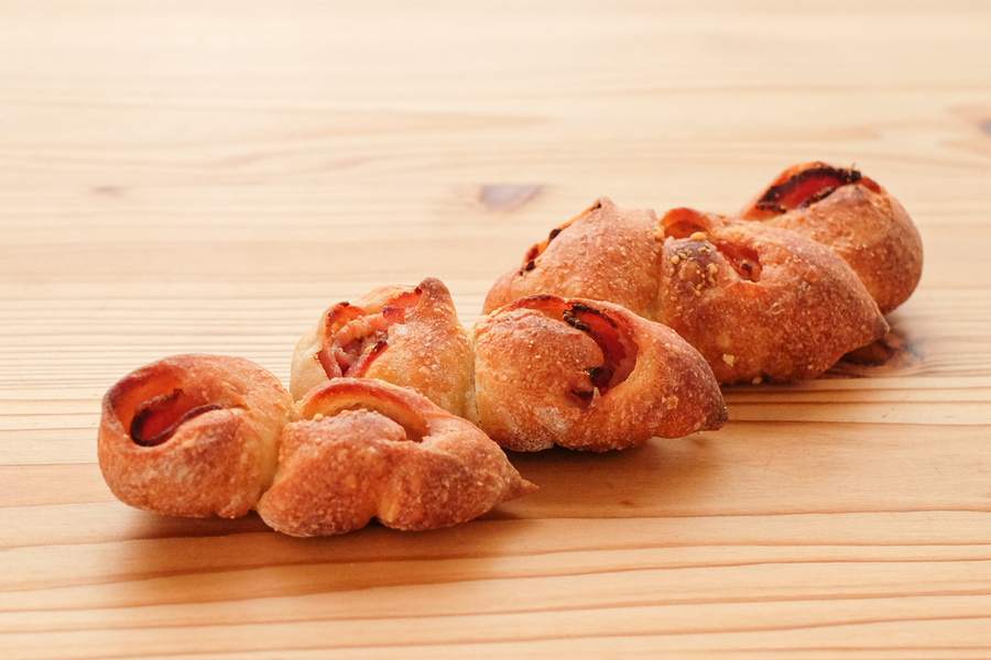 主な原材料:小麦粉、砂糖、塩、パン酵母、バター、マーガリン、モルトエキス 他 アレルゲン(7品目):小麦・乳成分 柚子胡椒ベーコン(商品一例):小麦粉(国内製造)、パン酵母、塩、モルトエキス、豚バラ肉、糖類、植物性タンパク、卵タンパク、発酵調味料、乳タンパク、タンパク加水分解物、柚子、青唐辛子ペースト/加工デンプン、調味料、カゼインNa、リン酸塩(Na)、増粘多糖類、くん液、酸化防止剤(V.C)、発色剤、コチニール色素、(一部に小麦・卵・乳成分・大豆・豚肉を含む) ※アレルギーがご心配な方はご遠慮下さい。 ※同梱されておりますご案内をご覧下さい。