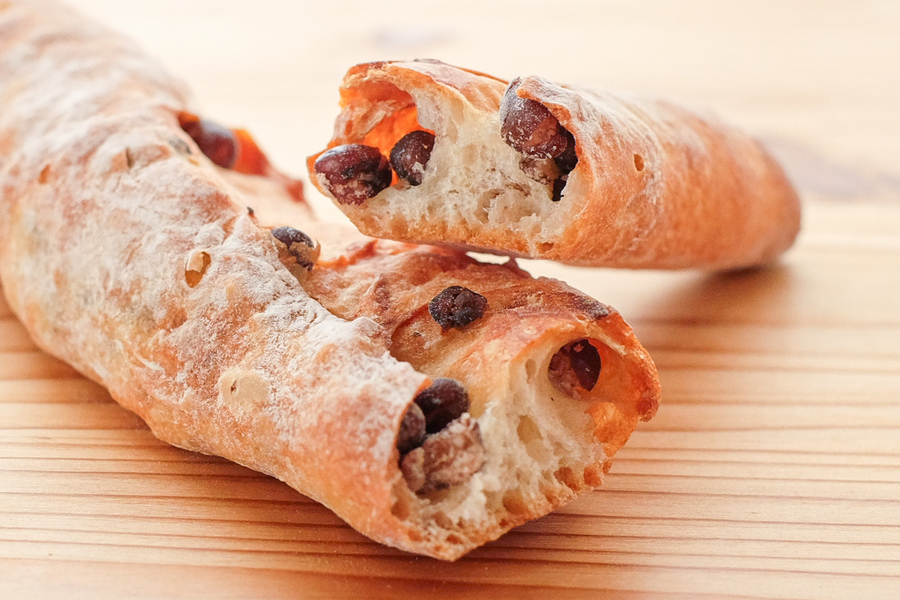 自然解凍後、あらかじめ余熱しておいたオーブンやトースターで温めてお召し上がりください。(※気温が上がってくる夏場は一晩冷蔵庫で解凍してください) パン全体に霧吹きなどで軽く水をかけてからトースターで3分~4分ほど加熱するとさっくり、もっちり出来たてのようになり美味しく召し上がれます。