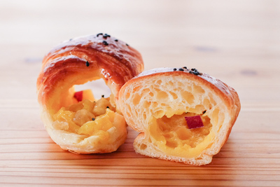 自然解凍後、あらかじめ余熱しておいたオーブンやトースターで温めてお召し上がりください。(※気温が上がってくる夏場は一晩冷蔵庫で解凍してください) パン全体に霧吹きなどで軽く水をかけてからトースターで3分~4分ほど加熱するとさっくり、もっちり出来たてのようになり美味しく召し上がれます。