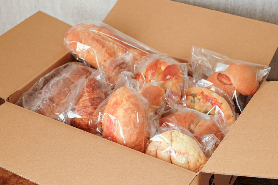 自然解凍後、あらかじめ余熱しておいたオーブンやトースターで温めてお召し上がりください。(※気温が上がってくる夏場は一晩冷蔵庫で解凍してください) パン全体に霧吹きなどで軽く水をかけてからトースターで3分~4分ほど加熱するとさっくり、もっちり出来たてのようになり美味しく召し上がれます。 厚みのあるパンは表面がこげやすいのでアルミホイルをかけて加熱してください。