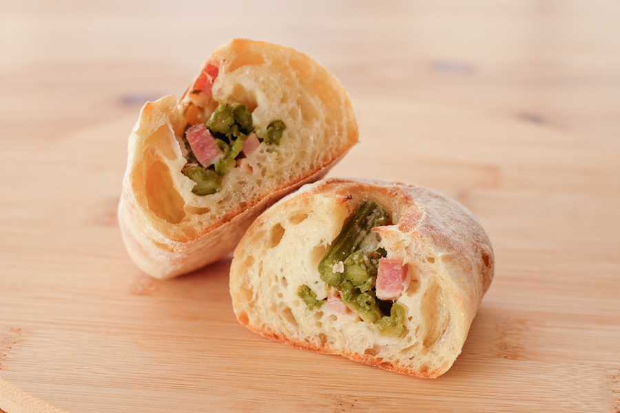 自然解凍後、あらかじめ余熱しておいたオーブンやトースターで温めてお召し上がりください。(※気温が上がってくる夏場は一晩冷蔵庫で解凍してください) パン全体に霧吹きなどで軽く水をかけてからトースターで3分~4分ほど加熱するとさっくり、もっちり出来たてのようになり美味しく召し上がれます。 厚みのあるパンは表面がこげやすいのでアルミホイルをかけて加熱してください。
