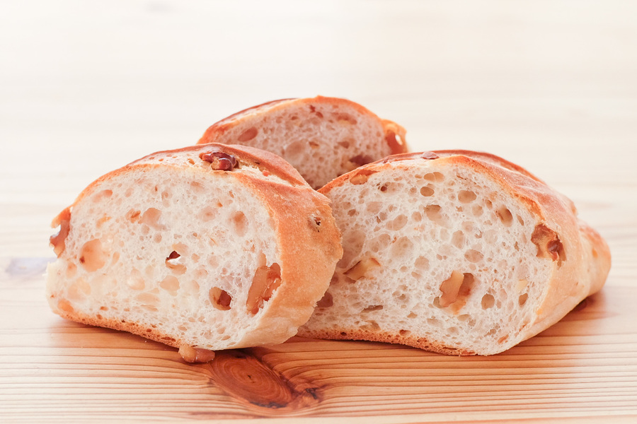 自然解凍後、あらかじめ余熱しておいたオーブンやトースターで温めてお召し上がりください。(※気温が上がってくる夏場は一晩冷蔵庫で解凍してください) パン全体に霧吹きなどで軽く水をかけてからトースターで3分~4分ほど加熱するとさっくり、もっちり出来たてのようになり美味しく召し上がれます。 厚みのあるパンは表面がこげやすいのでアルミホイルをかけて加熱してください。