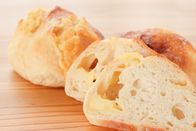 自然解凍後、あらかじめ余熱しておいたオーブンやトースターで温めてお召し上がりください。(※気温が上がってくる夏場は一晩冷蔵庫で解凍してください) パン全体に霧吹きなどで軽く水をかけてからトースターで3分~4分ほど加熱するとさっくり、もっちり出来たてのようになり美味しく召し上がれます。