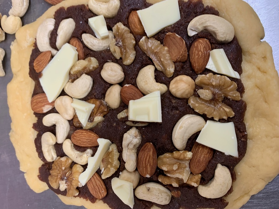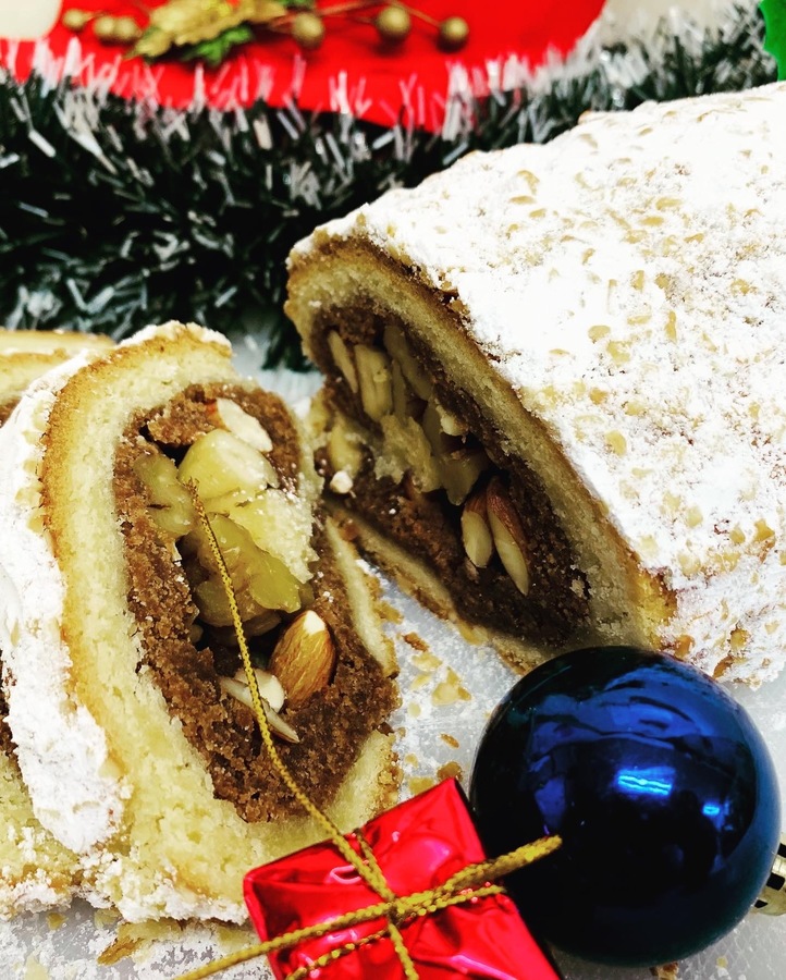 マジパン、アーモンドパウダー、グラニュー糖、卵、パウンドケーキ、くるみ、アーモンド、カシューナッツ、無塩バター、脱脂粉乳、ラム酒、リスドール、ココアパウダー、強力粉、チョコレート、ローストピーナッツ、牛乳、三温糖、酵母、粉糖、塩、バニラ アレルゲン(8品目):小麦・卵・乳成分・くるみ・落花生・アーモンド、カシューナッツ、