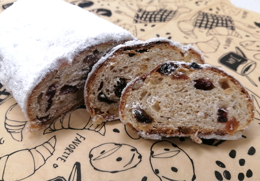 小麦粉、バター、マーガリン、牛乳、砂糖、クルミ、レーズン、アーモンド、練乳、クランベリー、パパイヤ、パインアップル、パン酵母、ブランデー、キルシュ、卵、塩/酸化防止剤、香料 アレルゲン(8品目):小麦・乳成分・卵・くるみ ※アレルギーがご心配な方はご遠慮下さい。
